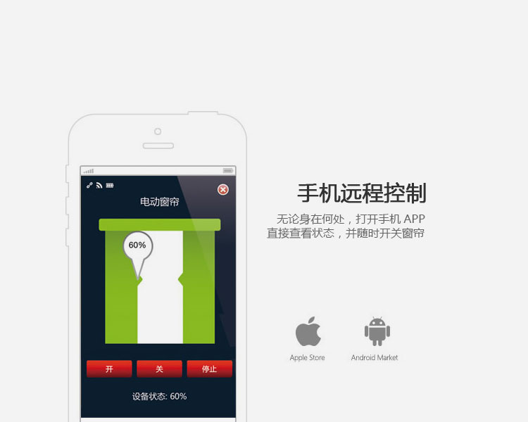 無論身在何處,打開手機APP直接查看狀態,并隨時開關窗簾。